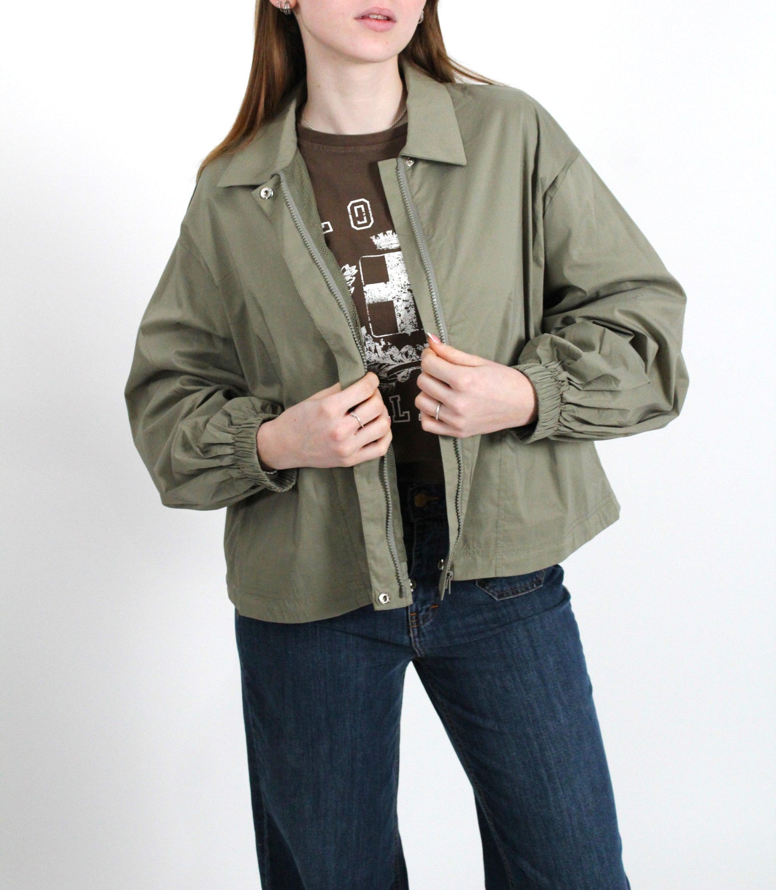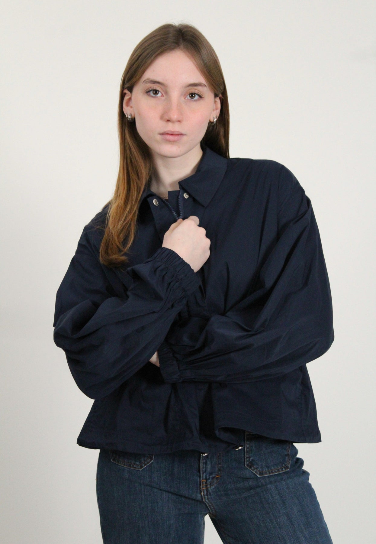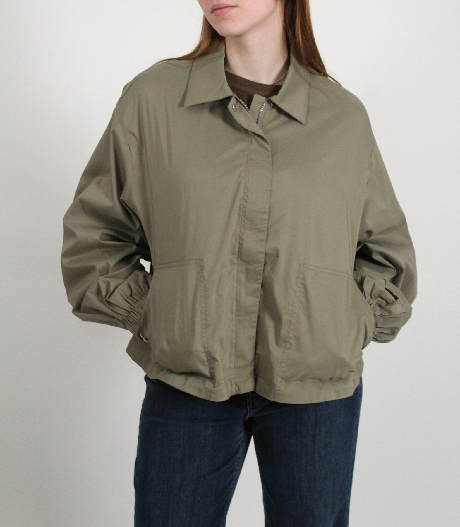 Il colletto classico, la chiusura con zip e bottoni automatici e i polsini elasticizzati completano il look, rendendola ideale per outfit casual e urban.