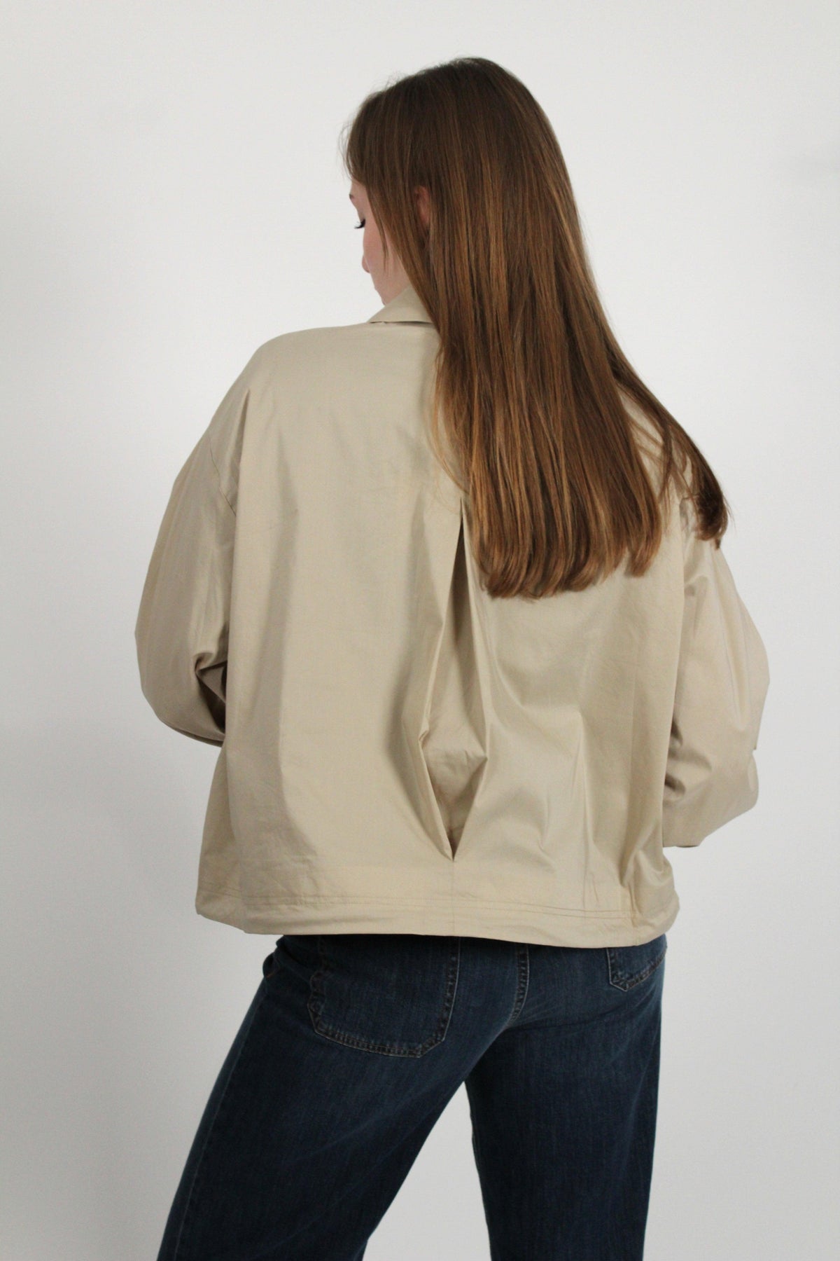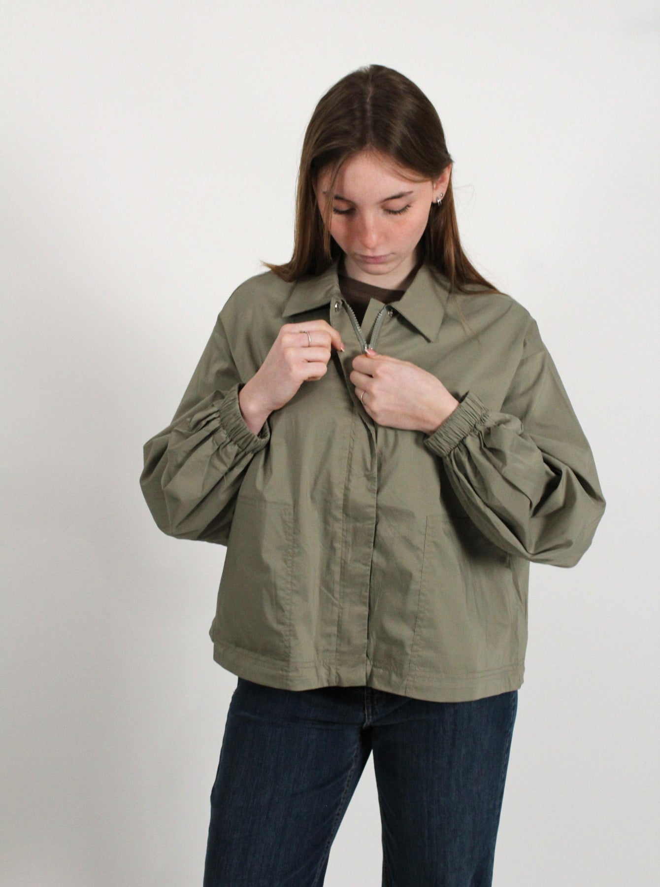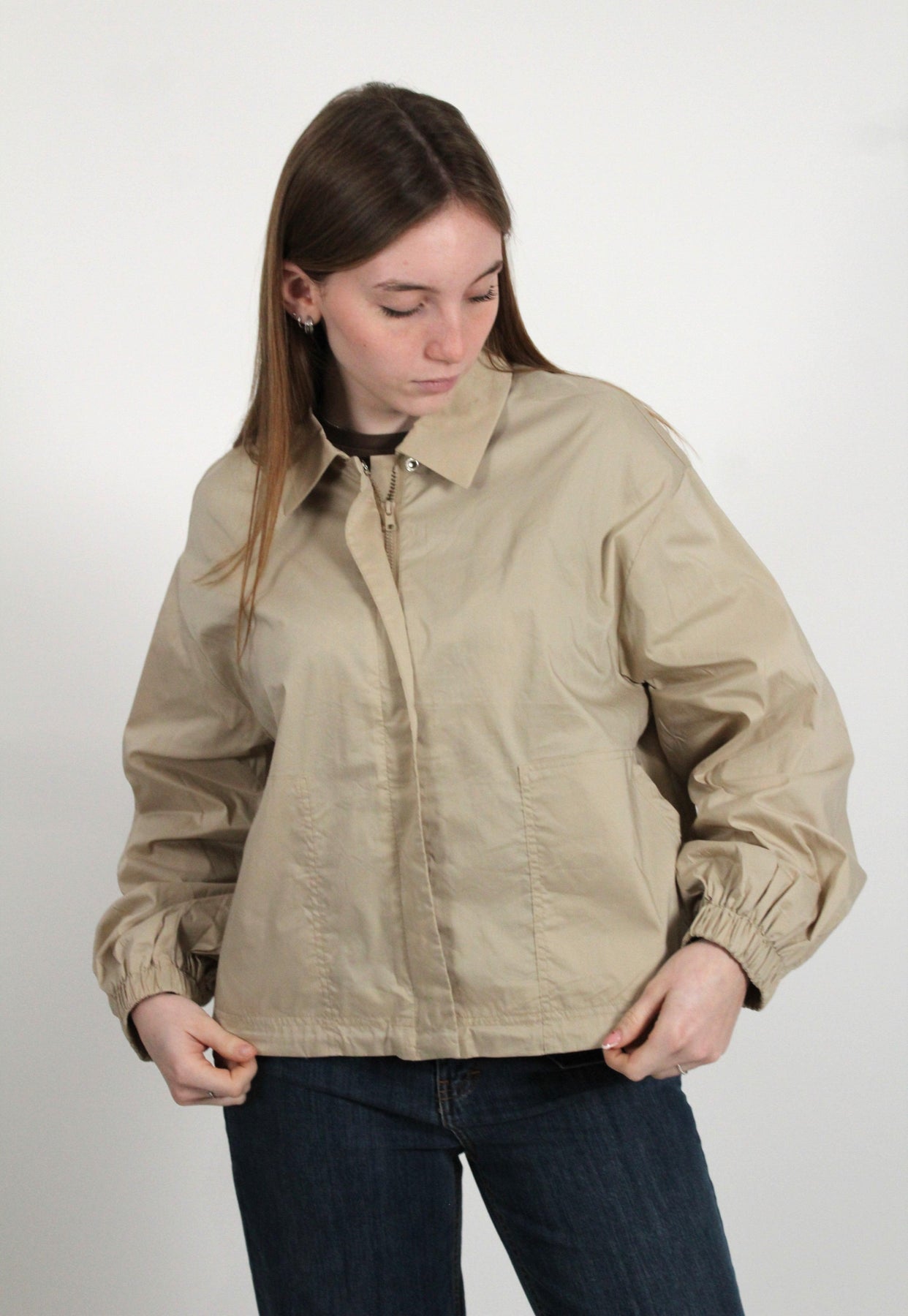 Il colletto classico, la chiusura con zip e bottoni automatici e i polsini elasticizzati completano il look, rendendola ideale per outfit casual e urban.