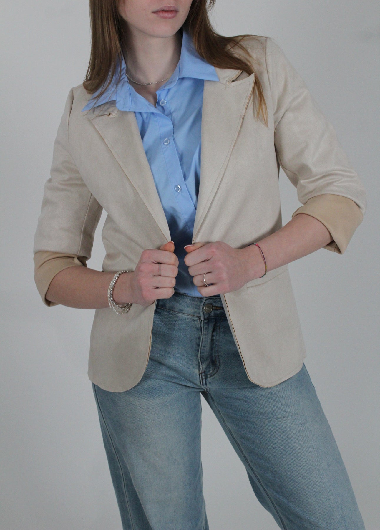 Questa giacca scamosciata è un capo perfetto per completare ogni outfit.